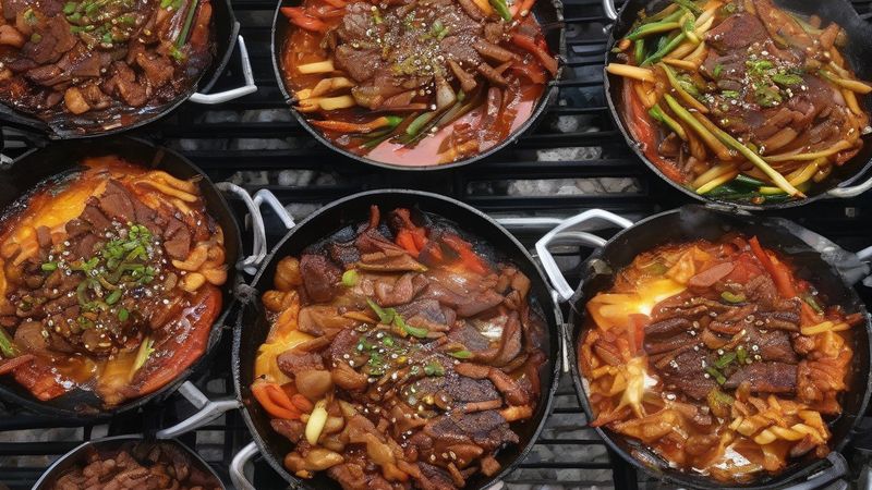Dakgalbi - популярна корейська страва, ідеальна для спільного споживання. Це смачне блюдо складається з курячого м'яса, маринованого у пекучій корейській соусі, та салатних овочів.